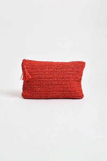 The Paper Weave Large Pouch in Red is crafted from woven raffia, this large pouch features a zip closure with a tassel detail and a soft lined interior.