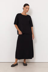 The Rochelle Short Sleeve Knit Top features a ribbed knit finish with a classic crew neckline and short sleeves. Designed with a relaxed fit that finishes above the hips.