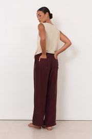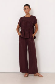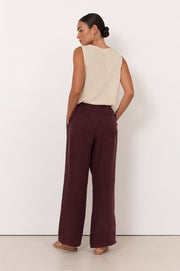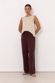 The Stevie Pant in Plum is cut from a soft cupro blend with a relaxed straight leg. Finished with a drawstring waistband and side seam pockets.