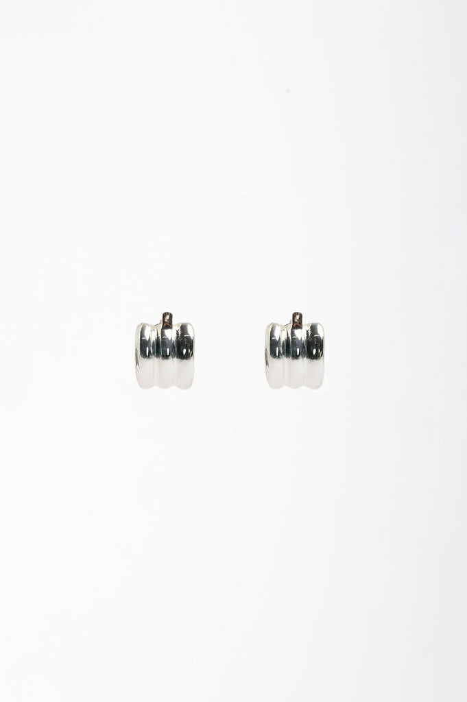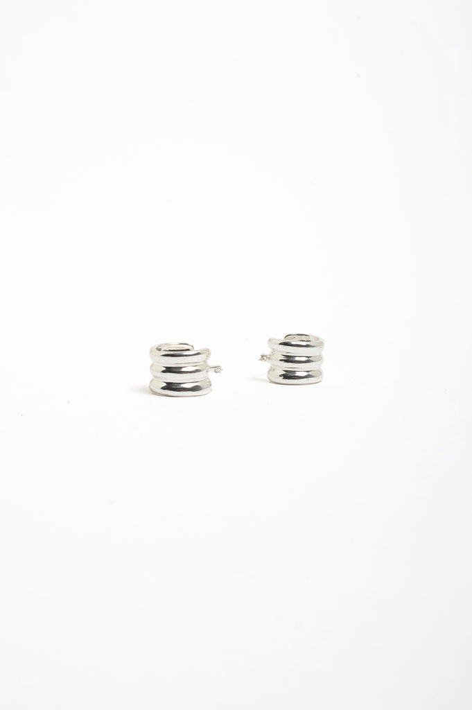 The Silver Trio Rows Mini Earrings feature a stacked hoop design in a refined mini silhouette. They fasten with a hinge closure and are nickel-free for everyday comfort. Crafted from plated metal.